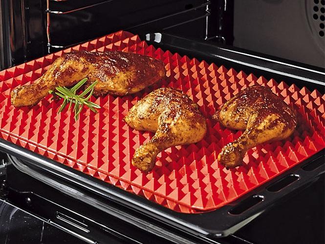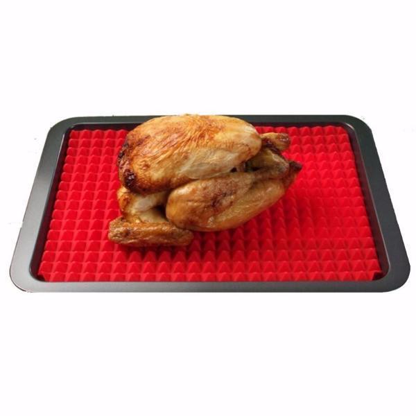 Are you sick and tired of always having to flip your oven-baked food items one by one to ensure that they are cooked evenly? Introducing the Pyramid Pan, a food grade heat-resistant silicone baking mat with over 300 contours, which allows for easy air circulation and even-cooking of your food.